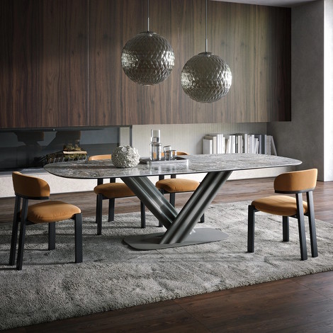Обеденный стол Sipario, отделка керамика Aubisque, Carbon серый, 250x120x74 см