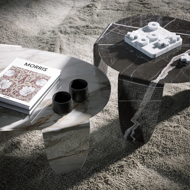 Журнальный столик Central, отделка хром, керамогранит, 100x100x30 см