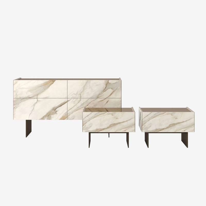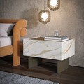 Прикроватная тумбочка Cristalia night, отделка Stone bronze, Crystal Calacatta, зеркальный топ Bronze