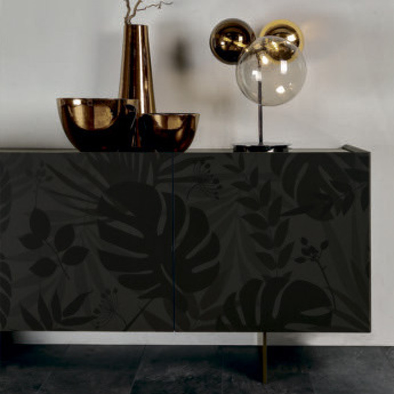 Буфет Kong, отделка трафаретная печать, бронза, черное стекло